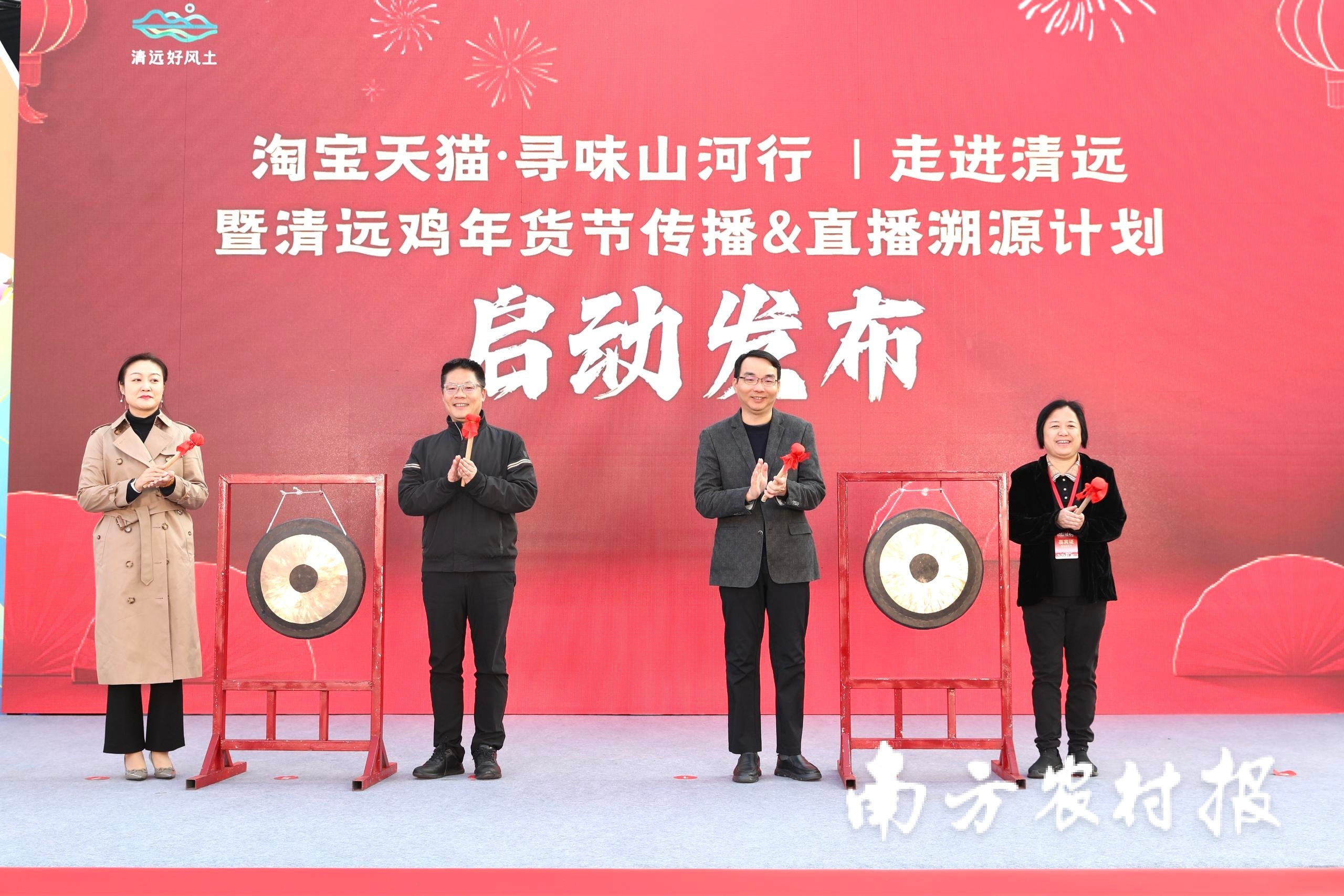 12月19日,中国首鸡全球发布暨清远鸡专场直播系列活动,在“五大百亿过大年”——“清远好风土”广州·北京路品牌展演产销对接活动上正式启动,淘宝天猫将携手清远鸡等清远特色农产品,为广大消费者带来了一场别开生面的年货盛宴。启动仪式上,清远市农业农村局、南方农村报社、淘宝天猫集团、天农食品四方联合发布了《淘宝天猫·寻味山河行清远鸡传播直播行动计划》。